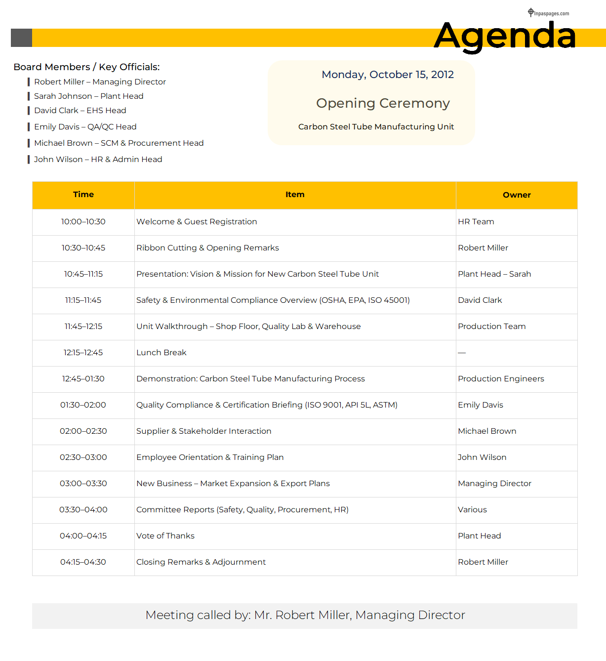 Agenda for New Product launch Meeting Format | Example | Samples | Excel File | Word Document