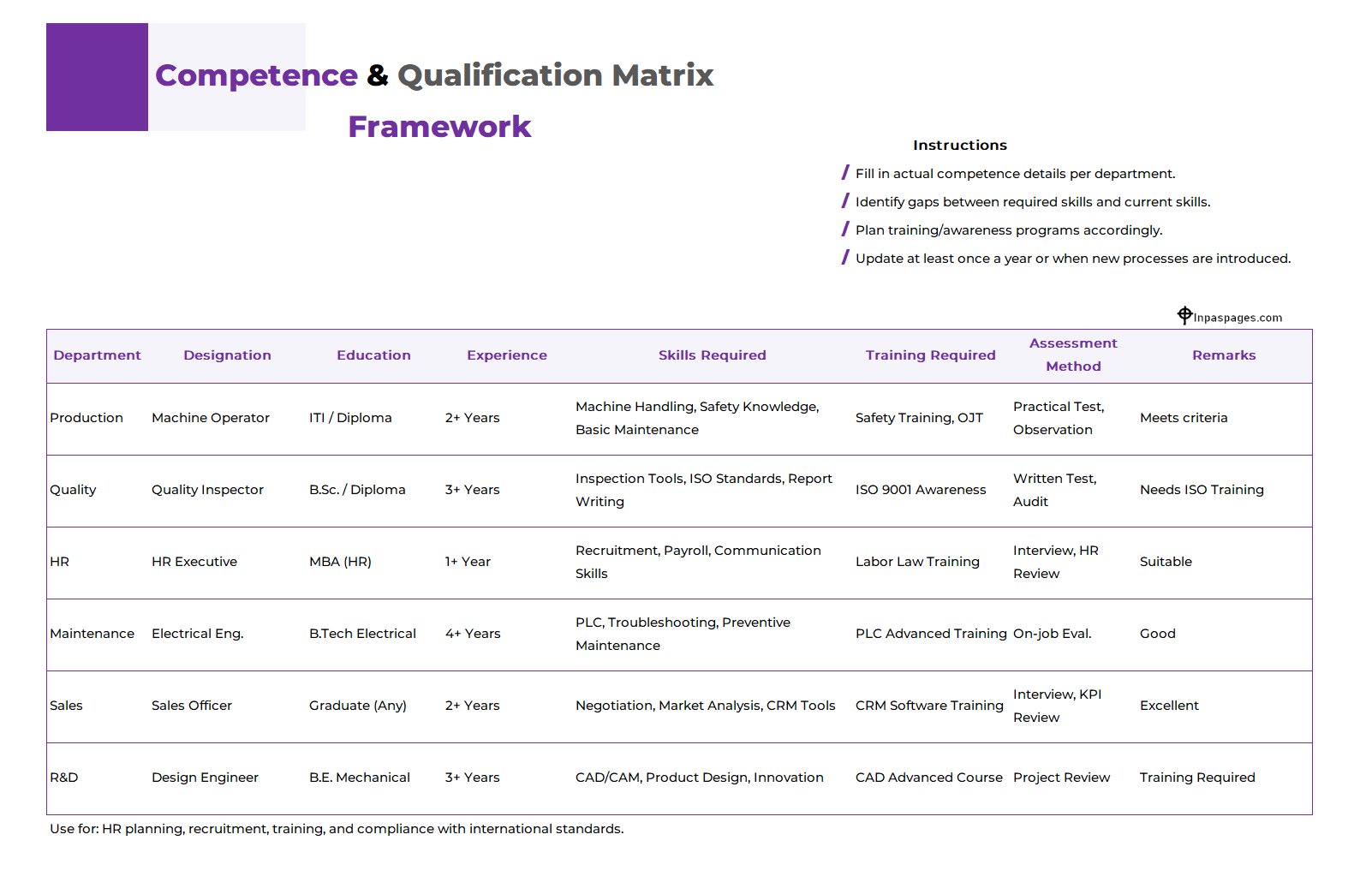 Free Competence qualification matrix (framework) Format in PDF, Excel, JPG format - Download Competence qualification matrix (framework) Format PDF format