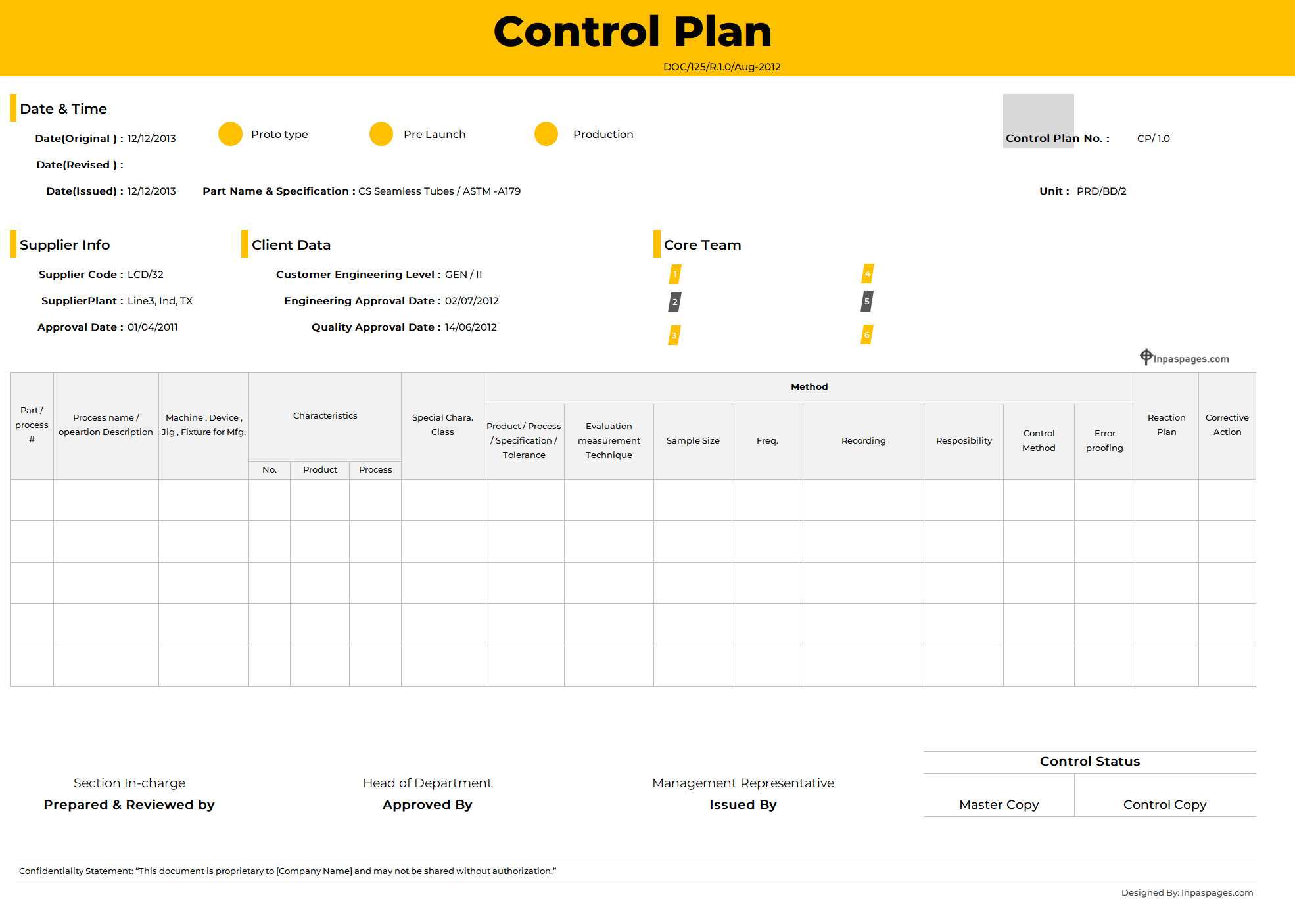 Control Plan Format Image 01 | Examples | Formats | Download for free.