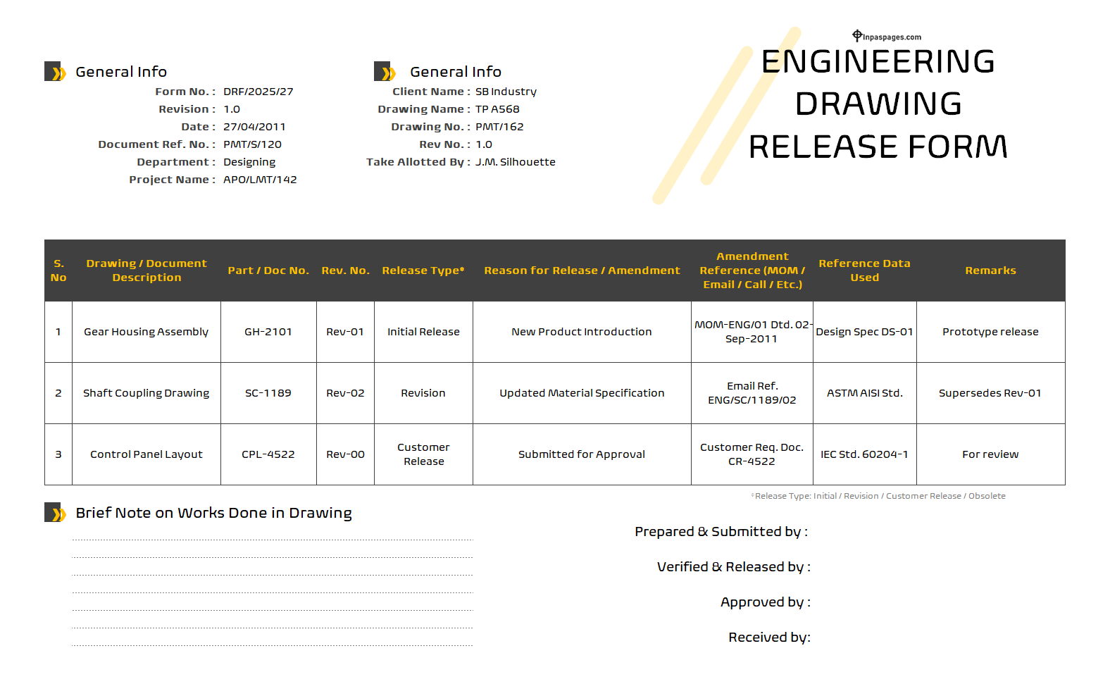 Free Engineering Drawing Release Form Format in PDF, Excel, JPG format - Download Engineering Drawing Release Form Format PDF format