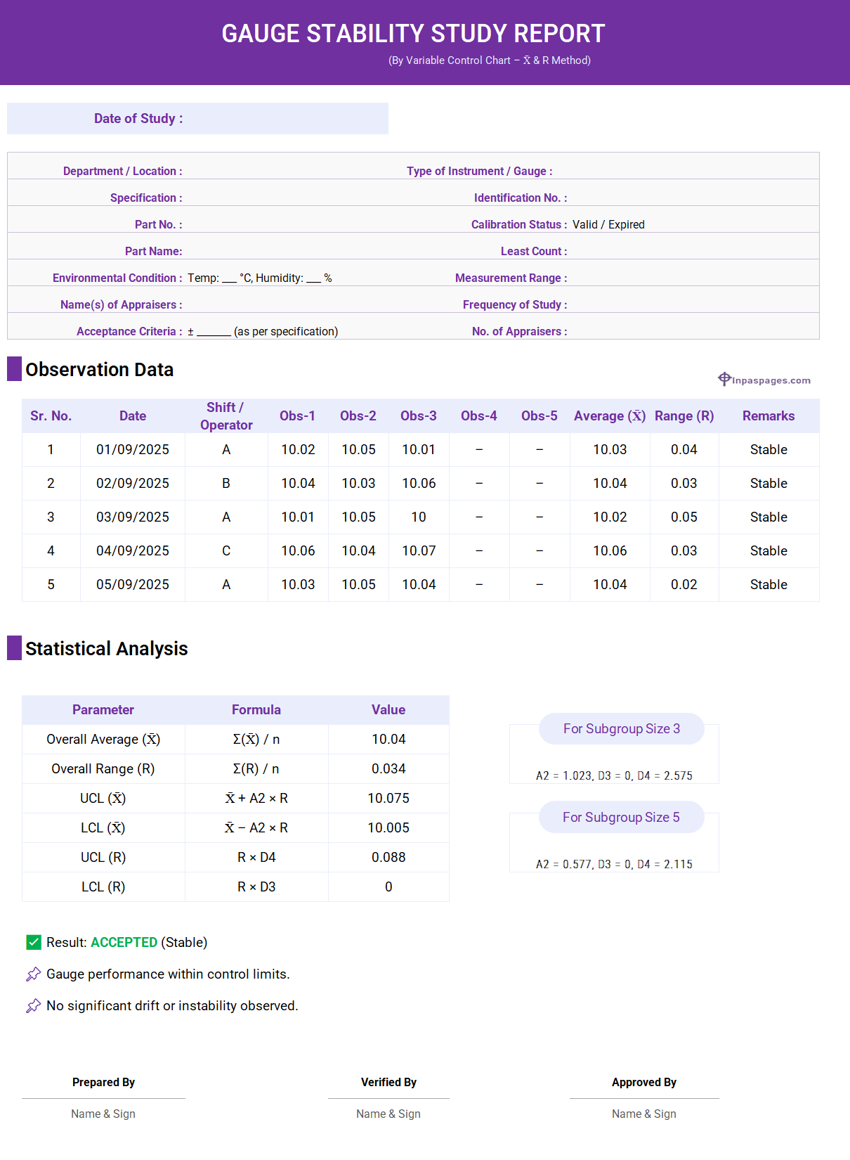 Free Gauge stability study report Format in PDF, Excel, JPG format - Download Gauge stability study report Format PDF format