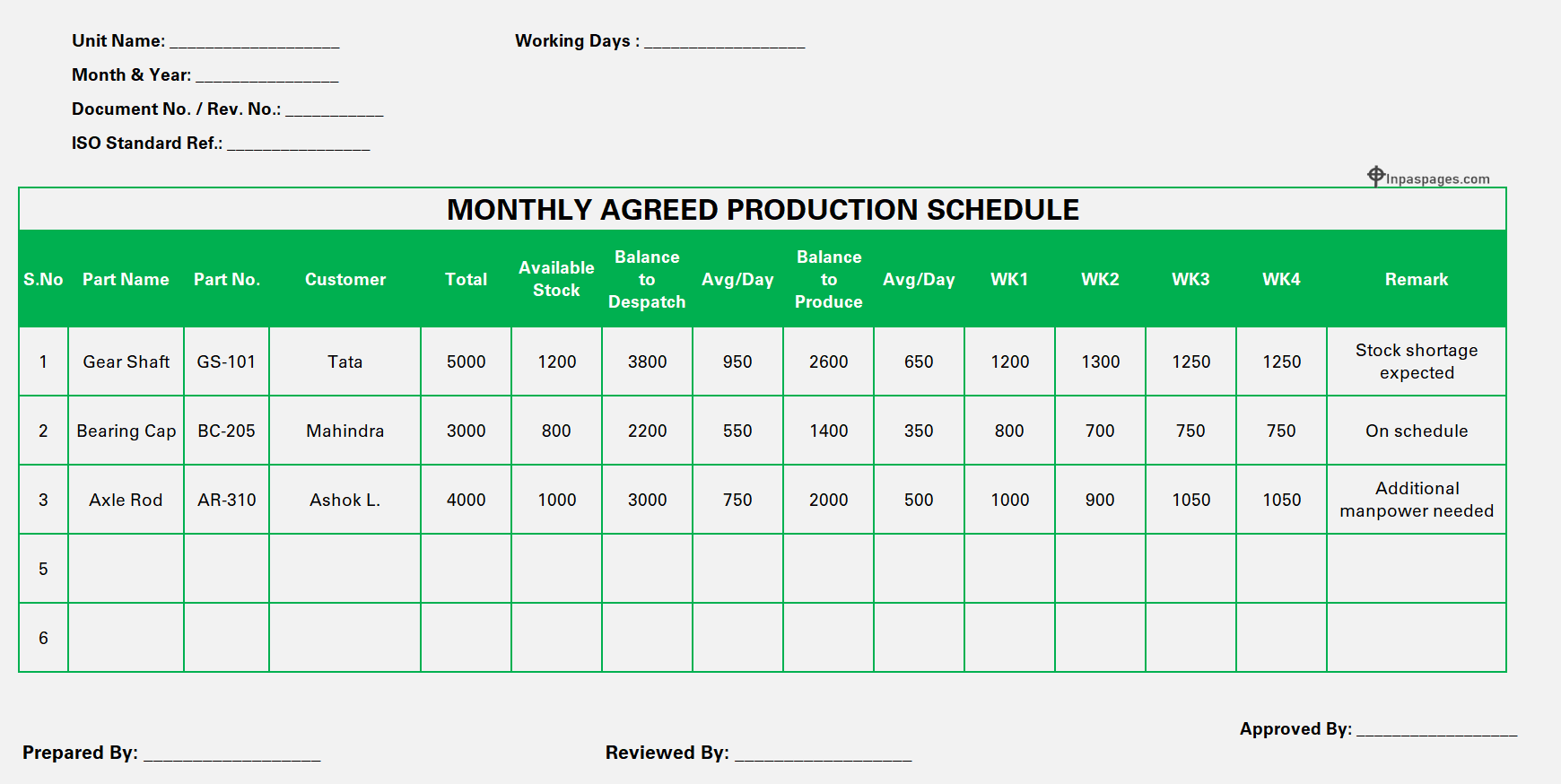 Free Monthly Agreed Production Schedule Format in PDF, Excel, JPG format - Download Monthly Agreed Production Schedule Format PDF format